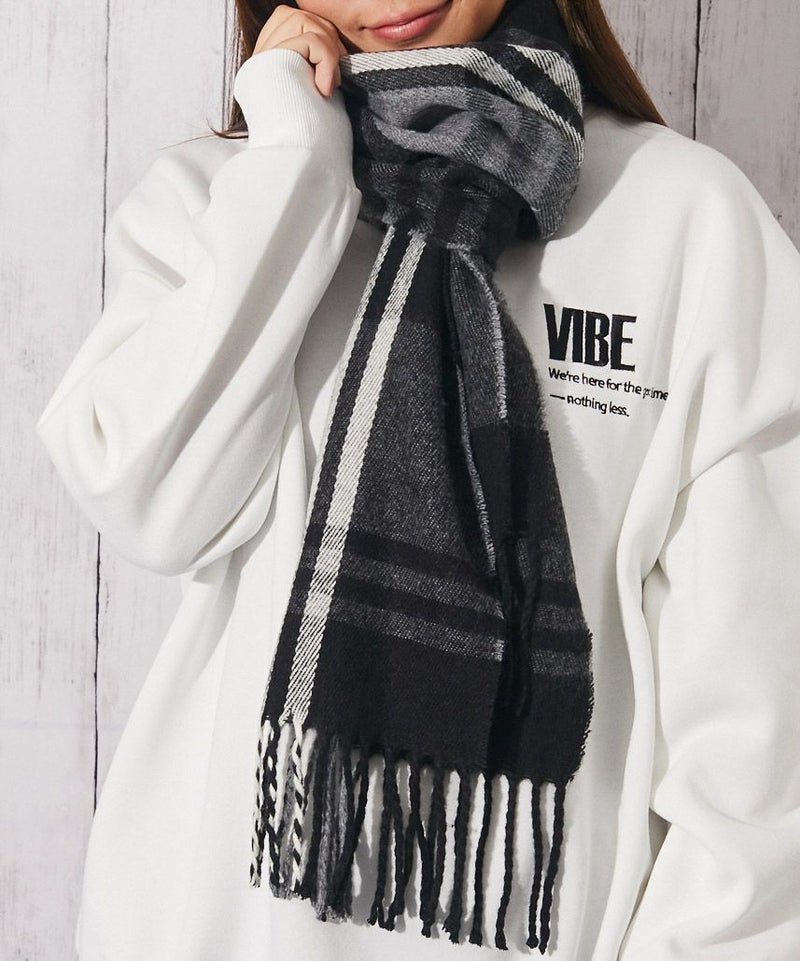 《チェック柄×フリンジ》レディース マフラー ストール 春夏秋冬