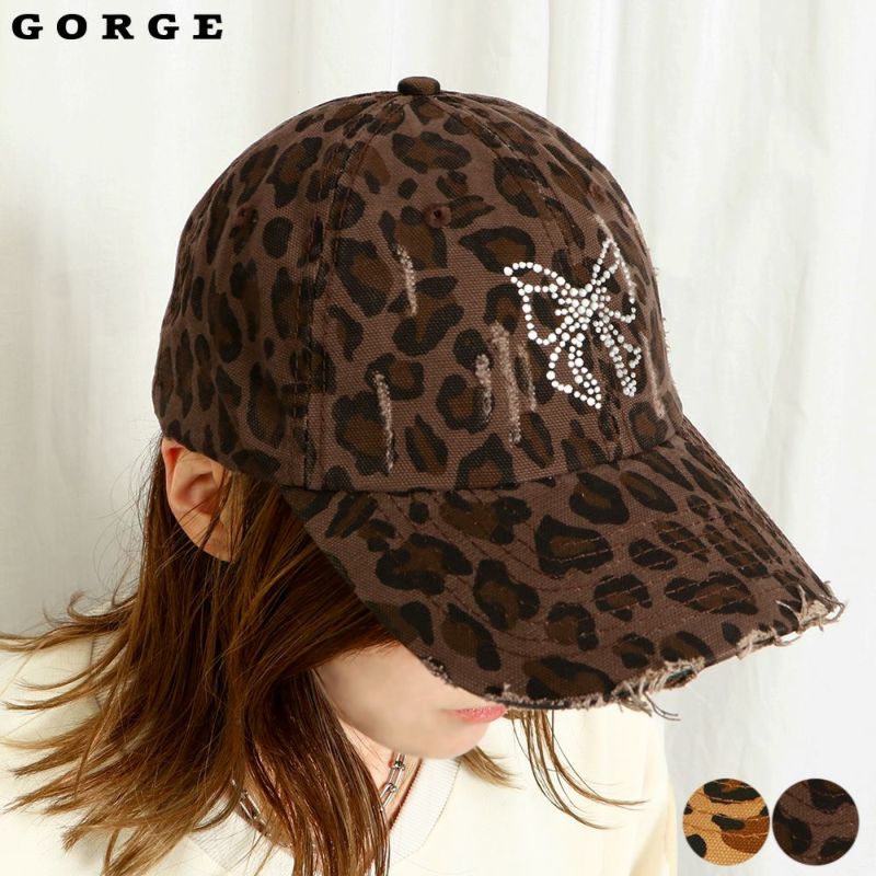 帽子 キャップ リボン ヒョウ柄 ダメージ加工 韓国ファッション Y2Kファッション 2432302