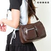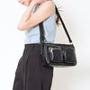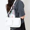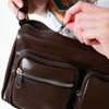 フロント部分に二つのファスナーポケットが配置されており、小物を整理しやすい構造になっています。頻繁に取り出すアイテムを収納するのに便利で、機能性の高さがうかがえます。