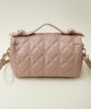 立体感のあるキルティングに、ゴールドのアクセント金具が映える上品なデザイン。ころんとしたフォルムながらも、かっちりとした印象で大人っぽさを演出します。手持ちもできるハンドル付きで、スタイルに合わせてアレンジが楽しめる仕様です。