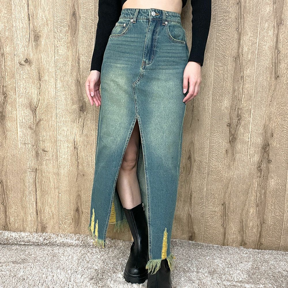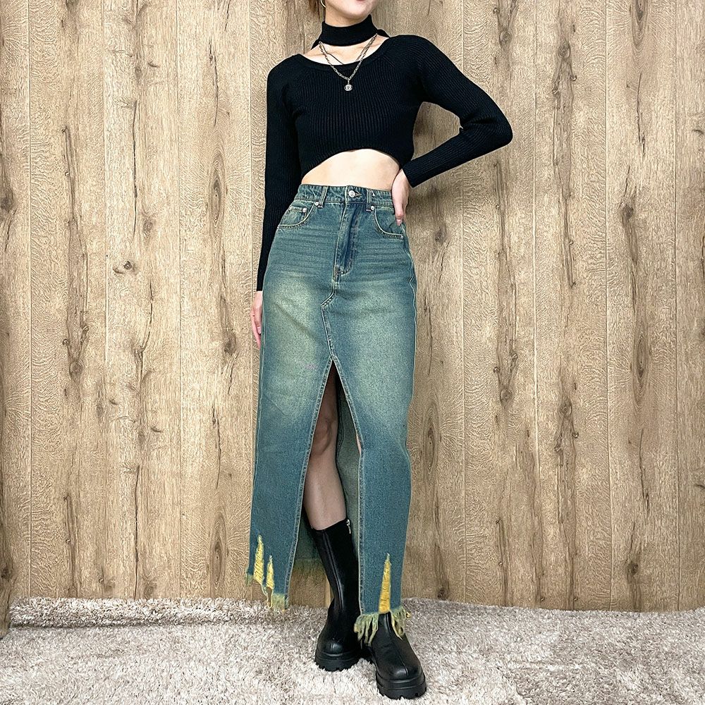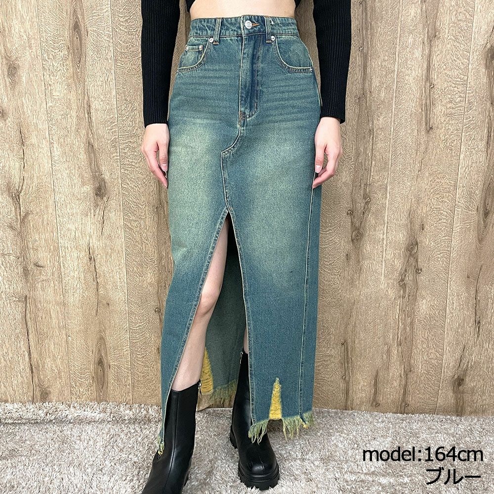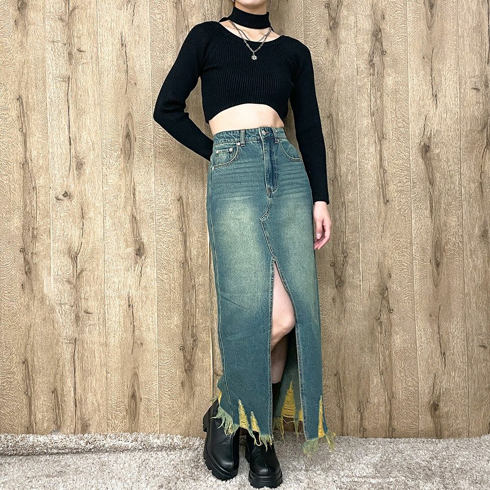 ダメージデニムロングスカート