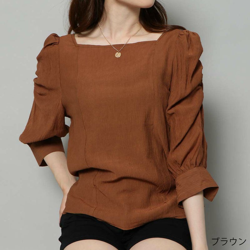 楊柳 スクエア スクエアネック パワショル ブラウス トップス ギャザー 七分袖 インナー 2130003
