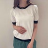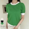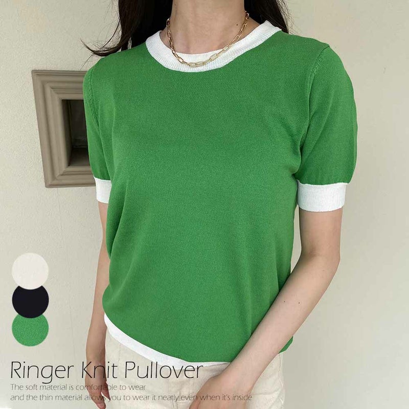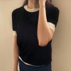 配色 バイカラー ニット リンガー プルオーバー トップス 半袖 クルーネック シンプル 2130016