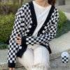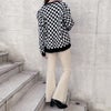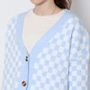 存在感のあるチェッカーフラッグ柄が目を惹くニットカーディガン。