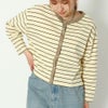 コンパクトな丈感と、トレンドの配色ボーダーがポイントのカーディガンが登場★トレンド感のある配色リブデティールの細部にまでこだわったアイテム♪たっぷりとした身幅やドロップショルダーで、こなれたカジュアルスタイルに◎ロンTとしても、ちょっとした羽織りとしても取り入れられるカーディガンです。※ネームを取っていただくと前後2WAYでご着用いただけます。