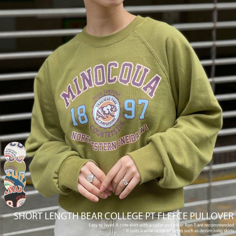 3. 短丈クマカレッジプリント裏毛プルオーバー