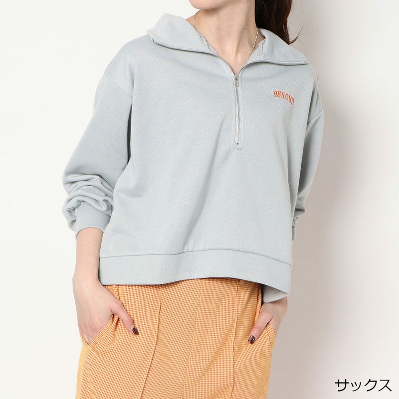 大きなジップが付いたハーフZIP短丈裏起毛プルオーバーが登場★