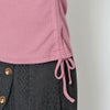 ウエストスリムに見せるワンポイント紐がヒラヒラ可愛いサイドギャザーDリブトップスが登場★