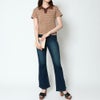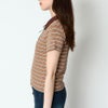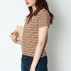 胸元のデザインが靴紐のように交差してオシャレな雰囲気のスピンドルスキッパートップスが登場★キュートなボーダー配色デザインで可愛らしいルックスのアイテム♪海外のカフェにいる女性を彷彿とさせるカジュアルな色合いです◎