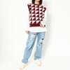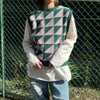 大きい柄でコーデの主役になるクルーネックニットベストが登場★落ち着いた秋らしいカラーのアイテムこれからの時期にピッタリ!デニムと合わせてストリートスタイルがオススメ☆