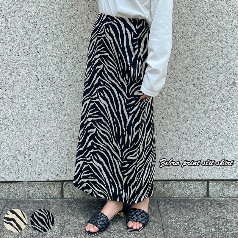 スカート ゼブラ柄 スリット ボトムス 大人カジュアル ロングスカート 春 夏 秋 冬 2230034