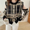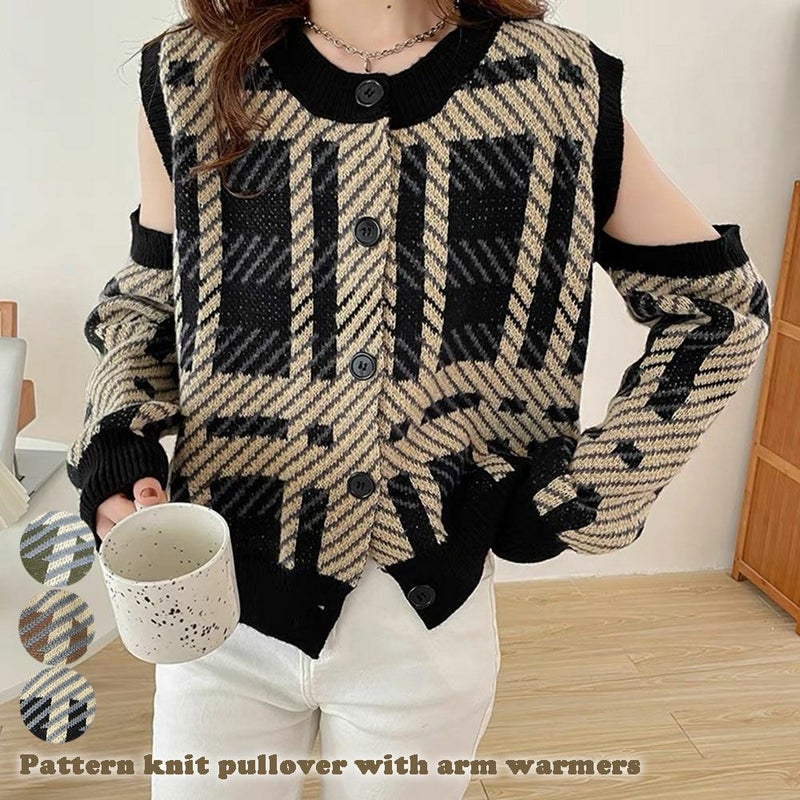 プルオーバー トップス アームウォーマー 柄 トレンド ニット 秋 冬 2230051