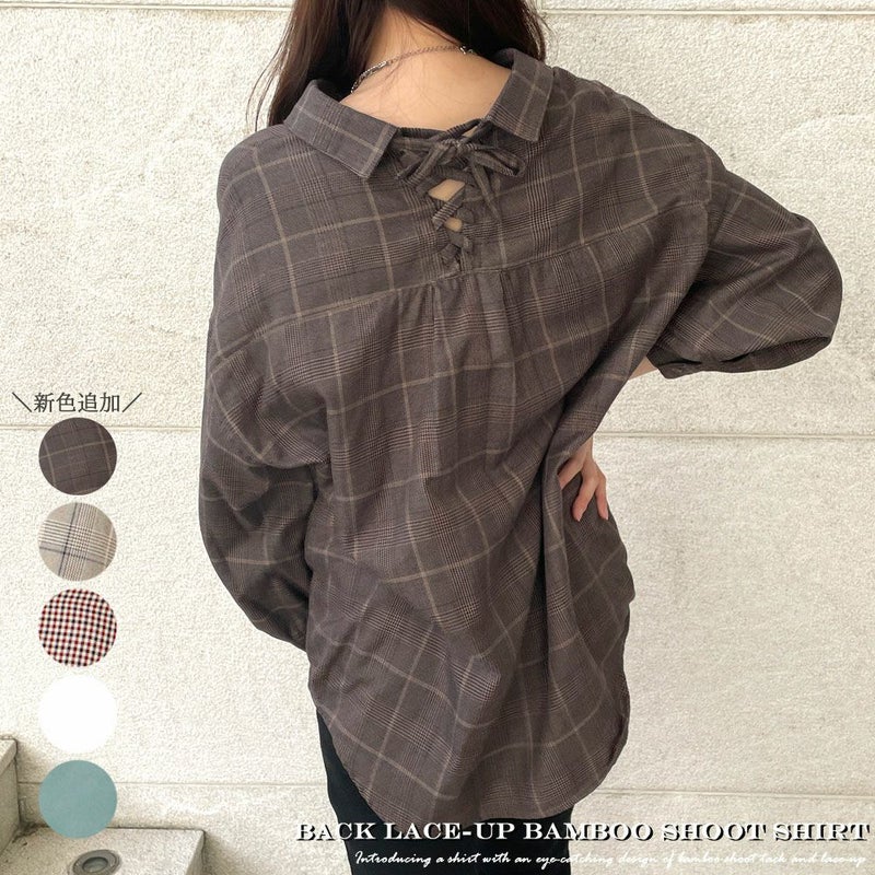 シャツ ブラウス Bレース タケノコタック バックレース レースアップ 夏 秋 2230975