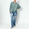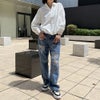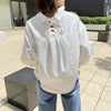 タケノコタックとレースアップが目を惹くデザインのシャツが登場★ボリュームたっぷりのタックで女性らしいふわっとした雰囲気のアイテム♪タイトなボトムスと合わせるとシルエットにメリハリが生まれるのでオススメなコーデです☆