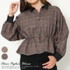 ペプラム ギャザー チェック ブラウス クレリック クレリックシャツ 秋 冬 2230978