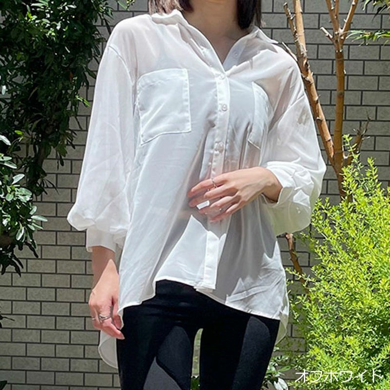 シャツ トップス ボリューム袖 ジョーゼット 長袖 夏 秋 2231539