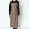 大人っぽく秋らしいキレイめキャミワンピ!合皮スリットワンピースが登場★晩夏から着れる手入れのしやすい合皮素材ワンピ♪ウエスト後ろゴムで自然に引き締めてくれるのでスタイルアップも☆カフェデートなどに今らしいルックスです◎