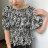 シャーリングトップス トップス 柄 シャーリング 夏 春 秋 2232660