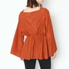 ヴェルスリーブとドルマンのシルエットが女性らしい上品なブラウスが登場★袖口が広いので手首が細く見えて嬉しいデザイン!ギャザーたっぷりで可愛らしさ◎デニムと合わせてカジュアルダウンさせるコーデがオススメ!
