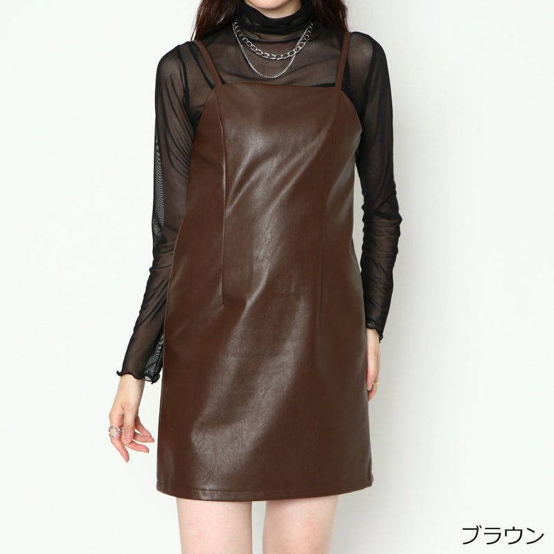 ワンピース キャミワンピ 合成皮革 エコレザー ミニ 秋 冬 2233020