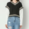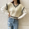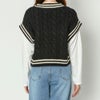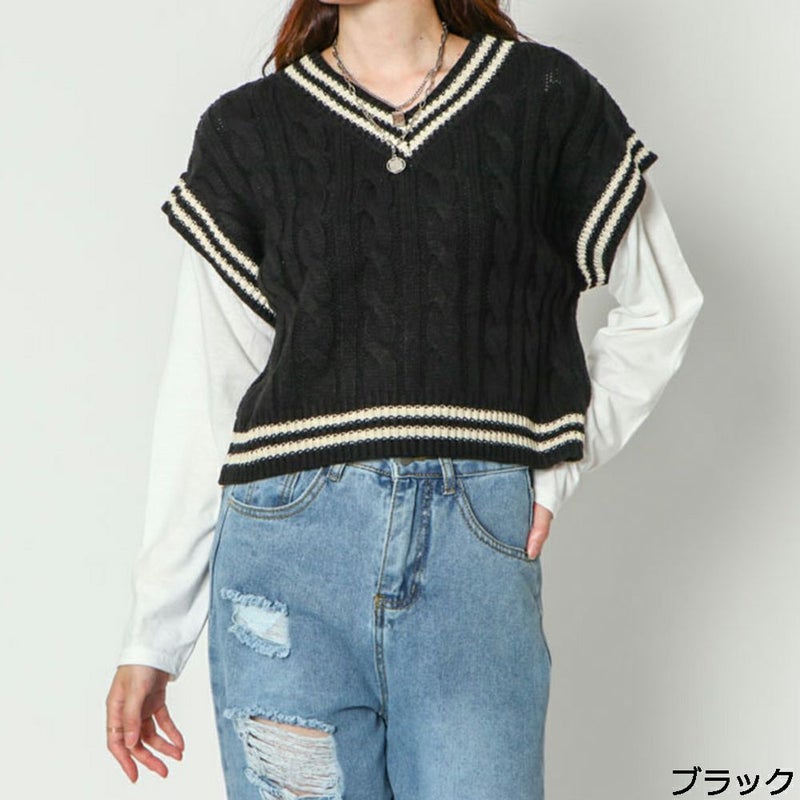 スクールライクで楽ちんドッキングニットベストが登場★ベストとロンTがドッキングされた楽ちんお洒落トップス♪ケーブルデザインが凹凸感を出して高見えする◎デニムやショートパンツなど合わせやすいアイテムです☆