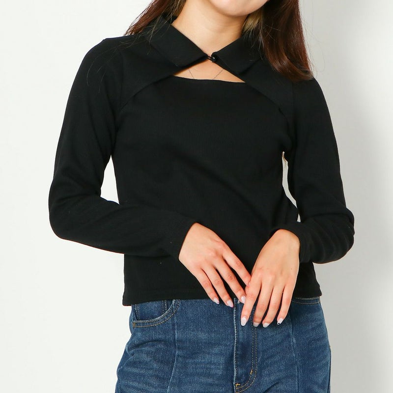 トップス 襟付き テレコ リブ 秋 冬 2235004