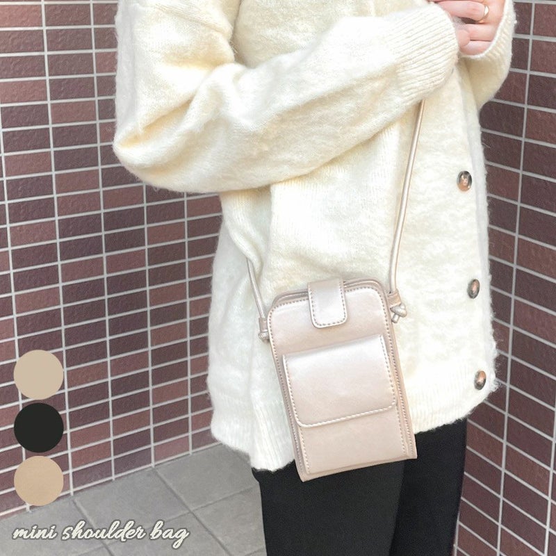 携帯用に最適なサイズ感のミニショルダーバッグが登場★お財布・カード・スマホなど使用頻度の高いアイテムを入れるのにジャストサイズなミニバッグ☆斜め掛けが出来て改札やお支払いなどの際もスイスイ楽ちんに対応できる♪収納も十分にあるのでかさばりやすいカード類入れなどにも活躍してくれます◎