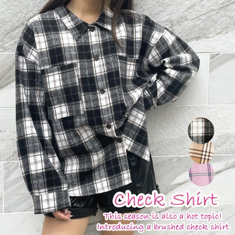 今シーズンも大注目!起毛チェックシャツが登場★シアートップスやタートルネックトップと合わせて着るのが今時ナチュラル系コーデ♪ライトアウターとしても一枚着としても着用可能☆古着のようなくたっと感がこなれ感がGOODの一枚です◎