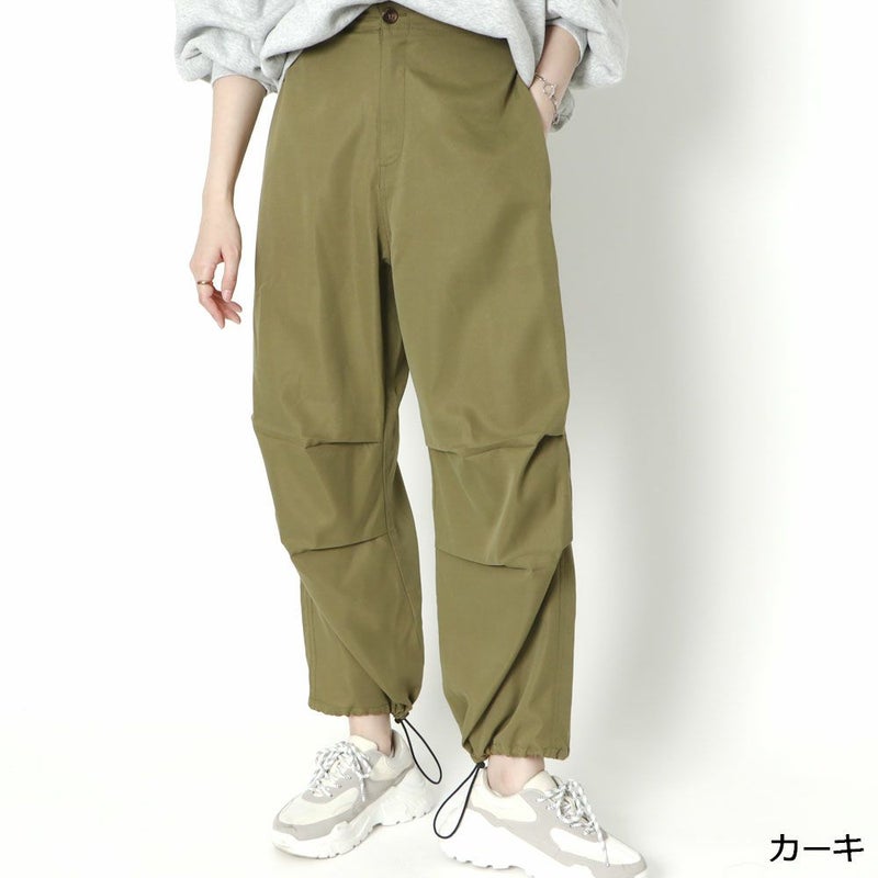 トレンドのワイドシルエットで仕上げたミリタリーなデザインのカーゴパンツが登場★ボリューム感があるので1枚でコーディネートの主役に。裾部分はそのままはもちろん、カーゴパンツらしくキュっとしぼって足首まで細見え☆