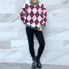 1枚で主役になる色使いが魅力的なハイネックアーガイル柄ニットが登場★今シーズンは韓国っぽコーデにもはまるレトロなアーガイル柄をセレクト♪リブの切り替えの色味が目を惹くアクセントに◎ボトムはスキニーパンツなどシンプルですっきりしたシルエットのものを合わせるのがオススメ!