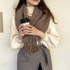 やわらかな素材感とふんわりとしたボリューム感でシーズンライクなバルキーマフラーの登場★マンネリ化しやすい秋冬のコーディネートの差し色にもぴったり♪存在感のあるフリンジデザインでアレンジ次第で様々なシーンで大活躍◎どんなコーディネートにも合わせやすい一枚です☆