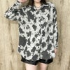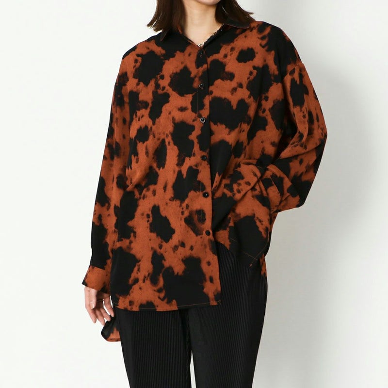大人クールで重ね着もしやすいタイダイ柄シャツが登場★どこかアニマル柄っぽさもある模様が特徴のアイテム♪サラッと羽織れる素材で着痩せ効果も◎小ぶりのアクセサリーとシンプルに合わせたりプルオーバーの下にひっそり襟見せしてもスタイリッシュでGOOD☆