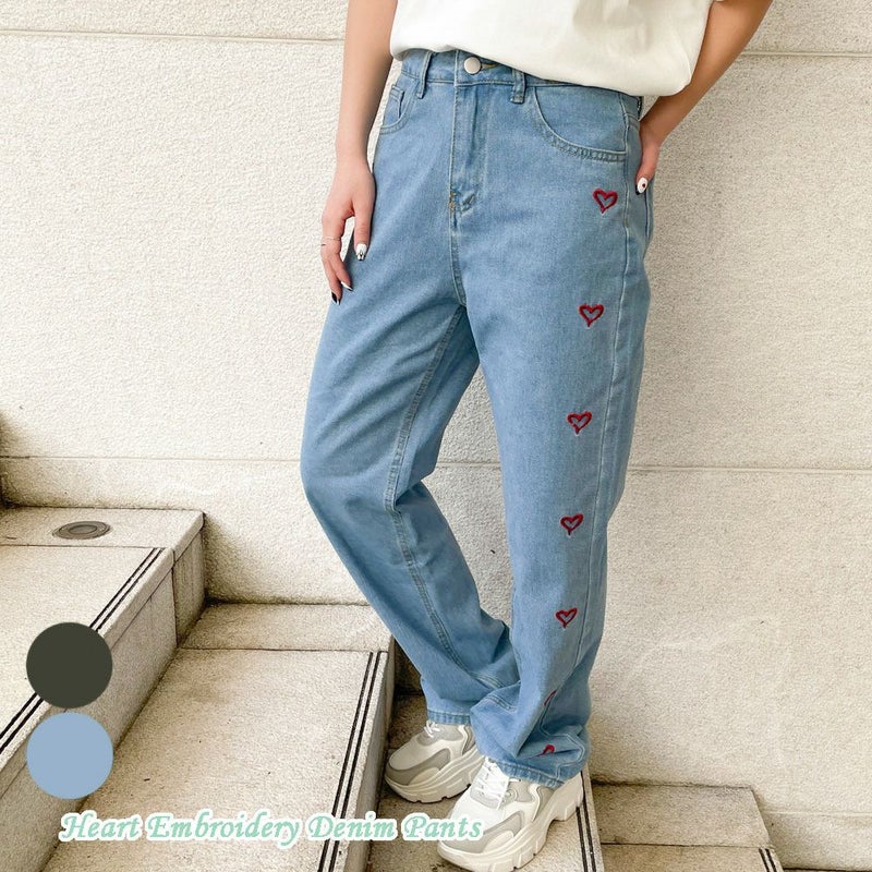 デニム パンツ ボトム 刺しゅう ハート ストレート 春 夏 秋 冬 2310011