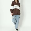 配色がお洒落で太いラインがクールなハーフジップ刺しゅう裏毛プルオーバーが登場★ライン上に英字の刺しゅう入りでキュート♪裏毛素材が肌触り抜群で優しく包んでくれる◎メンズライクなアイテムでストリート風にも着こなせます☆