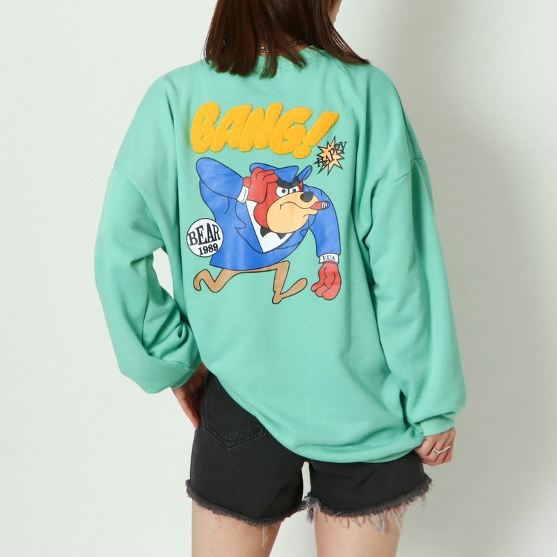 古着風でPOPなクマプリントが可愛いサガラ裏毛プルオーバーが登場★背中と胸元のもこもことした立体感のあるサガラ刺しゅうとカラフルなプリントカラーが目をひくポイント♪ゆったりとした身幅や着丈とドロップショルダー仕様でラフで快適な着心地◎デニムやチェックパンツ、オーバーオールなどで合わせたカジュアルスタイリングがおすすめ◎タイトスカート、フレアスカートと合わせても可愛いです☆