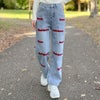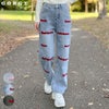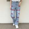 デニム パンツ ボトム 刺繍 サガラ ストレート 春 夏 秋 冬 2310017