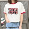 Tシャツ トップス 刺繍 リンガー 春 夏 秋 2310122