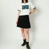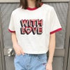 フロントのカラーロゴ刺繍がポイントのリンガー刺しゅうTシャツが登場★首元と袖口にパイピングカラーを効かせたリンガーデザイン◎程よくゆとりのあるシルエットが身体のラインを拾わないのも嬉しいポイント♪インもアウトも様になる丈感&シルエットで様々なコーディネートに☆
