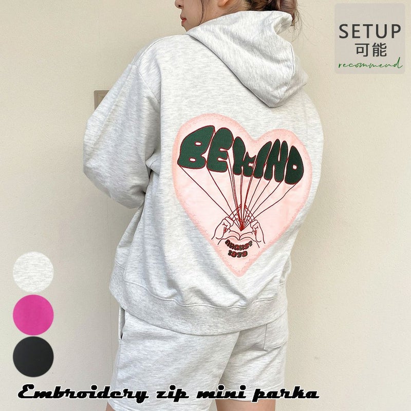 パーカー ミニ トップス ロゴ 裏毛 刺繍 セットアップ可能 春 秋 2310150