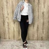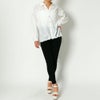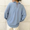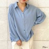フロントに並んだビジュライクなボタンが目を惹くバックレースアップブラウスが登場★共布のリボンで統一感を出して甘さを抑えたデザインなので前を開けて羽織としても活躍♪絶妙なゆったりシルエットで今年らしい印象に☆