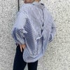 バックレースリボンが目を引く多種ボタンシャツが登場★柔らかい素材感は着心地も良く、羽織としても大活躍なアイテム♪程よい袖のボリューム感と可愛らしいリボンで女性らしい着こなしが出来るのも嬉しいポイント◎羽織としても使えるアイテムなので、シーズンマストな着こなしが出来ます☆