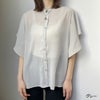 前後2wayでスタイリングできるラッフルブラウスが登場★透け感がありとろみのある柔らかな質感が可愛いらしいアイテム♪動きのあるフレアの袖が女性らしさを演出◎様々なシーンで活躍してくれます!
