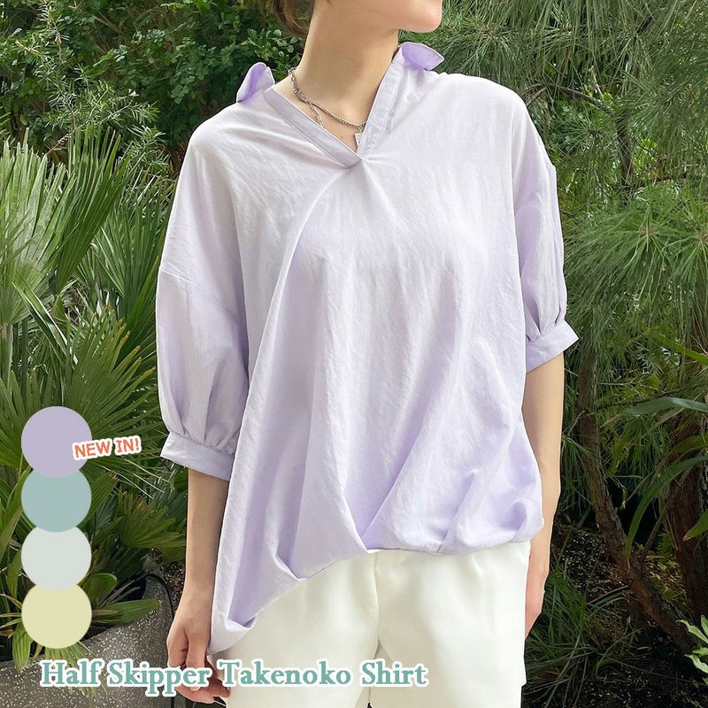 シャツ トップス 5分袖 スキッパー タケノコ 春 夏 2311034