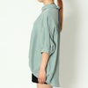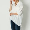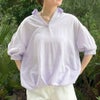抜け感を演出してくれる5分袖スキッパーシャツが登場★ゆとりのあるサイズ感ながら襟のスキッパーデザインとバックリボンが抜け感のあるルックスに♪ヒップが隠れる長さとタックのふんわり感でナチュラルに体型カバー◎トップスINが苦手な方でも、バランス良くコーディネートできるのでおすすめです☆