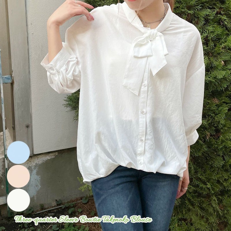 ブラウス トップス 7分袖 ボウタイ タケノコ 春 夏 2311035