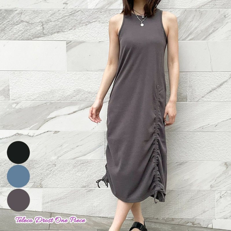 ゆるっとリラクシーなノースリーブワンピースが登場★すっきりとしたクルーネック仕様で夏のコーデを爽やかに着こなせるのも魅力的♪コーデに迷った時もコレ一枚で、こなれて魅せるアイテム☆サイドはドロスト仕様でお好みに合わせてシルエットの変化を付けていただけます☆