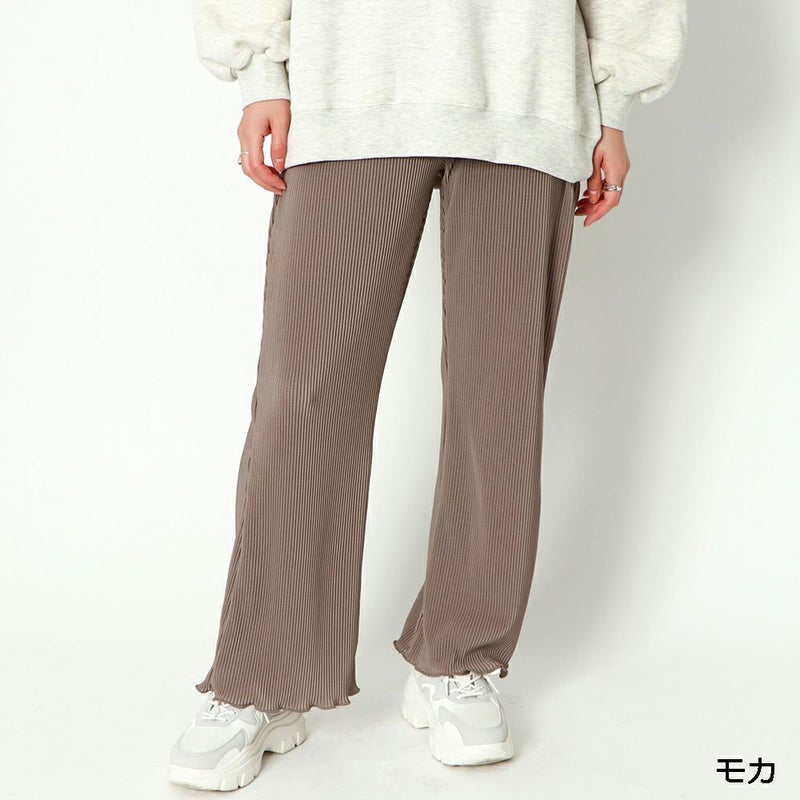 スラっと美脚効果も手に入れられるプリーツフレアパンツが登場★縦プリーツ&フレアなので脚長効果にスタイルアップ効果も♪合わせやすい単色カラーで多種多様に活躍間違いなし◎ゴムウエストで履き心地楽ちんフィット☆