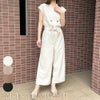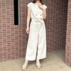 さらっとした生地で上品に決まる夏服定番のオールインワンが登場★普段使いはもちろん少しフォーマルなシーンでも着用可◎普段使いならスニーカーやフラットシューズでカジュアルダウンするのがオススメ♪リボンでウエスト周りをすっきりと見せてくれます☆