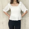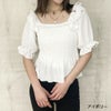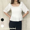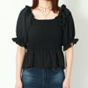 身頃のシャーリングデザインがポイントのスクエアネックブラウスが登場★袖はバルーンスリーブにフリルでふんわり可愛らしい雰囲気に◎コンパクトな丈感でボトムとのバランスもとりやすく、裾のフリルが腰位置を高めに見せてくれるのでスタイルUPも♪シンプルにデニムやベーシックなカラーのボトムス合わせがおすすめです☆
