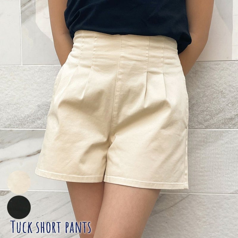 パンツ ボトム 無地 ショートパンツ タック 春 夏 秋 2314026